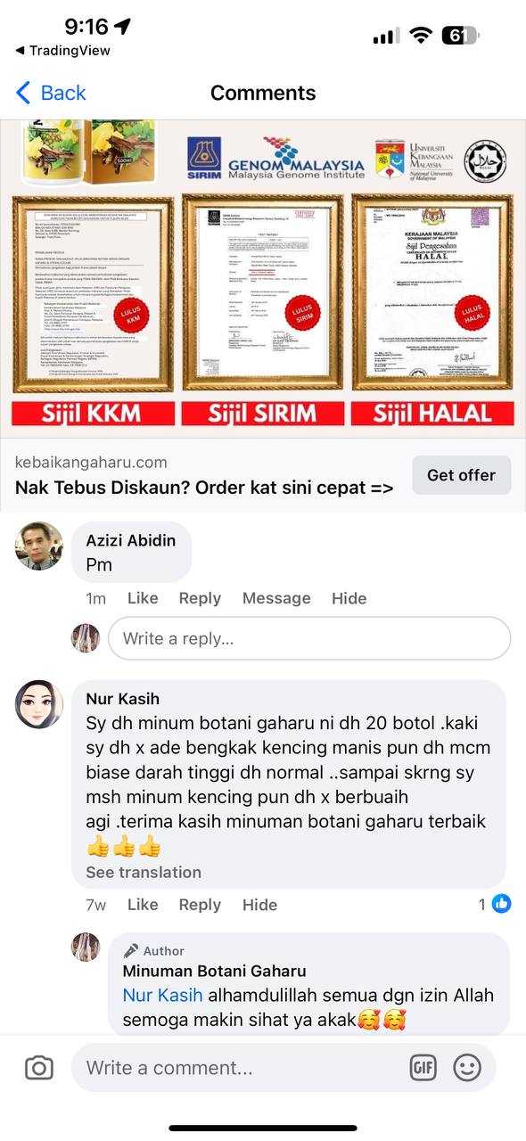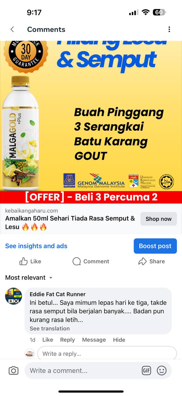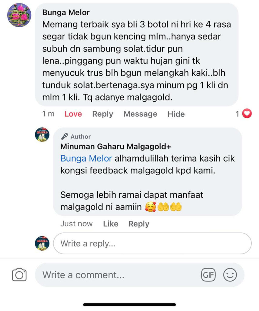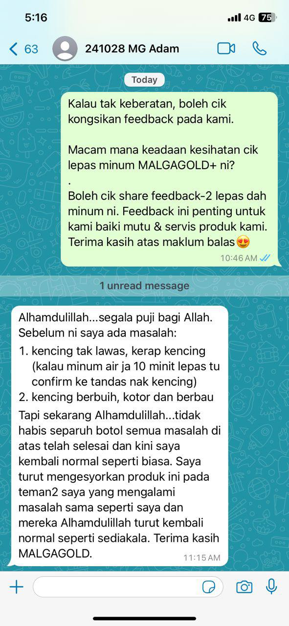 Sangat di sarankan untuk amalkan MalgaGOLD ini kerana ia mampu membantu merawat masalah 3 serangkai. Banyak Feedback kami terima.