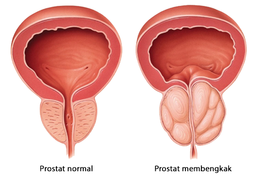 kelenjar prostat yang membengkak menekan saluran kencing (uretra). Ini menyebabkan aliran air kencing tersekat, iritasi, dan keradangan