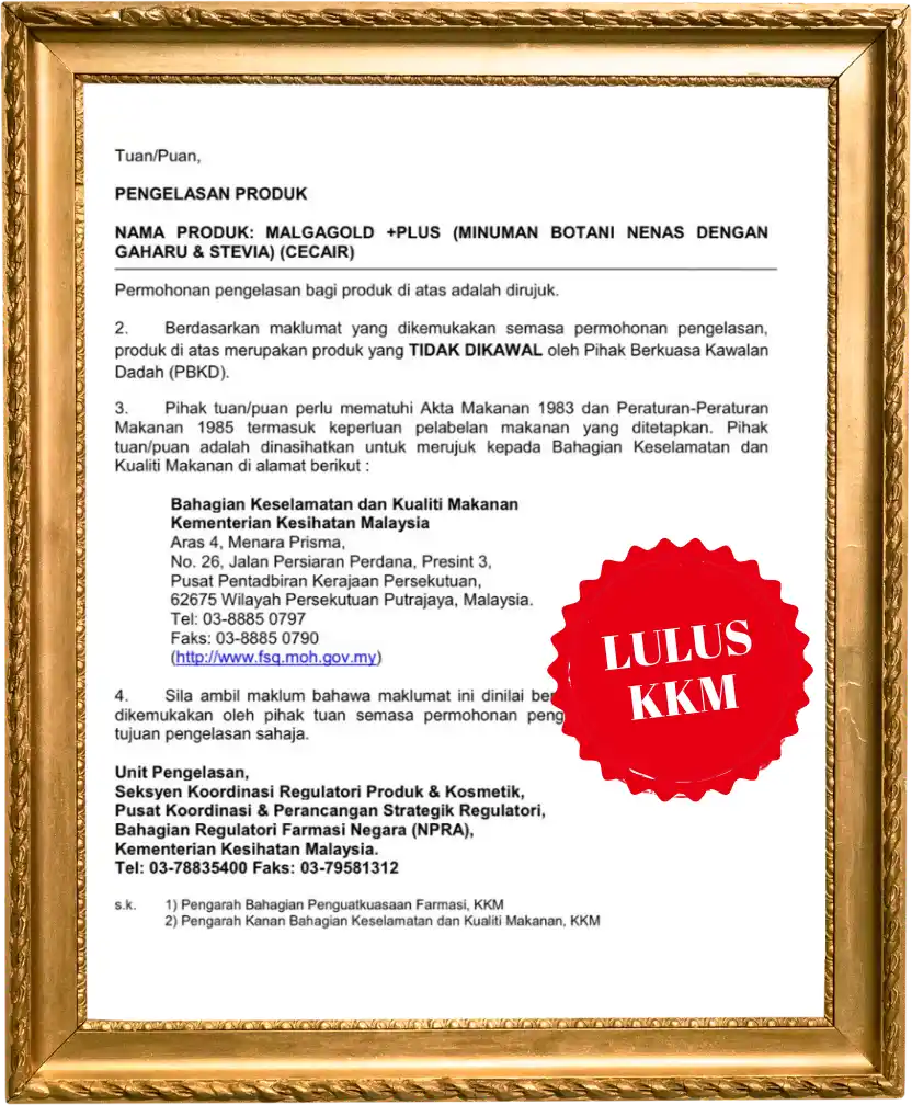 MALGAGOLD+ Produk Yang Dijamin Tentang Keberkesanan dan Keselamatan Oleh Pusat Penyelidikan Makmal