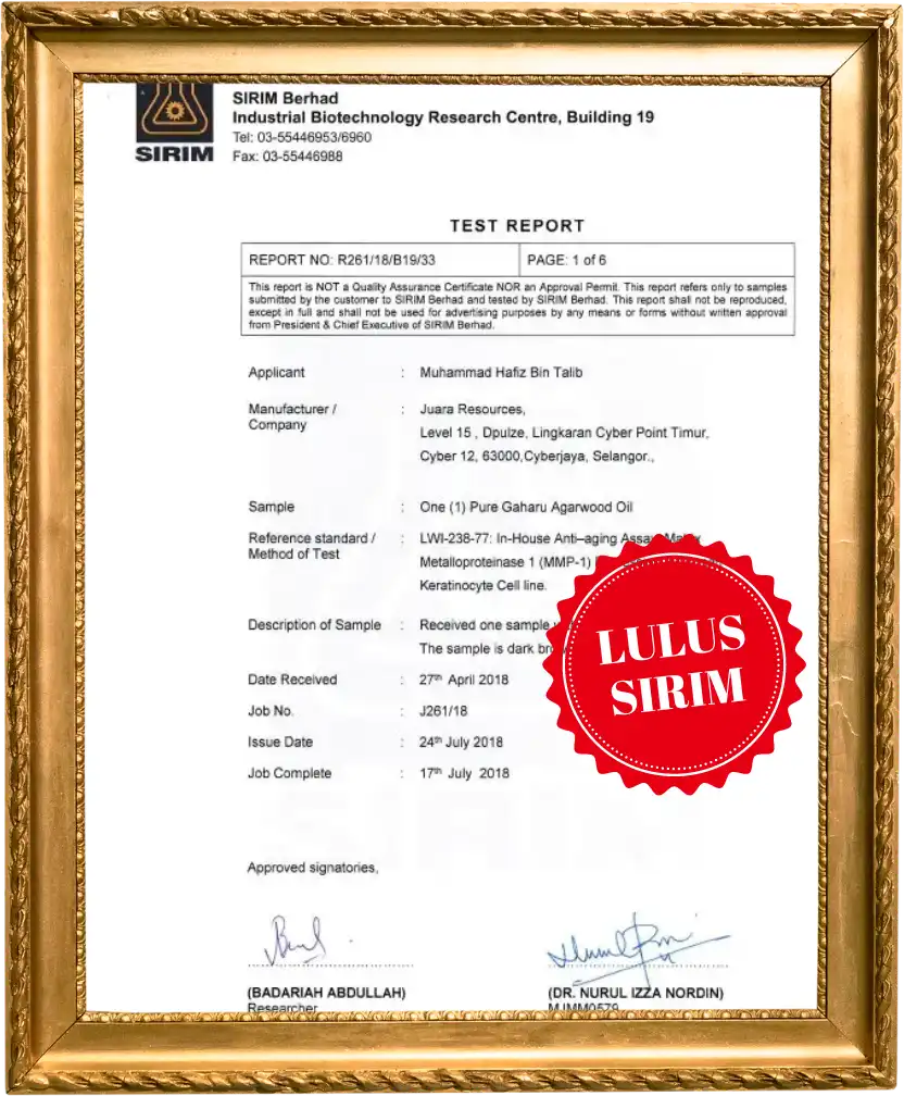 Air Sulingan Gaharu Hasil Kajian Saintis Dengan Formula Terbaru Inovasi Innokulat Tanpa Suntikan (Lebih Selamat Tanpa Kimia)