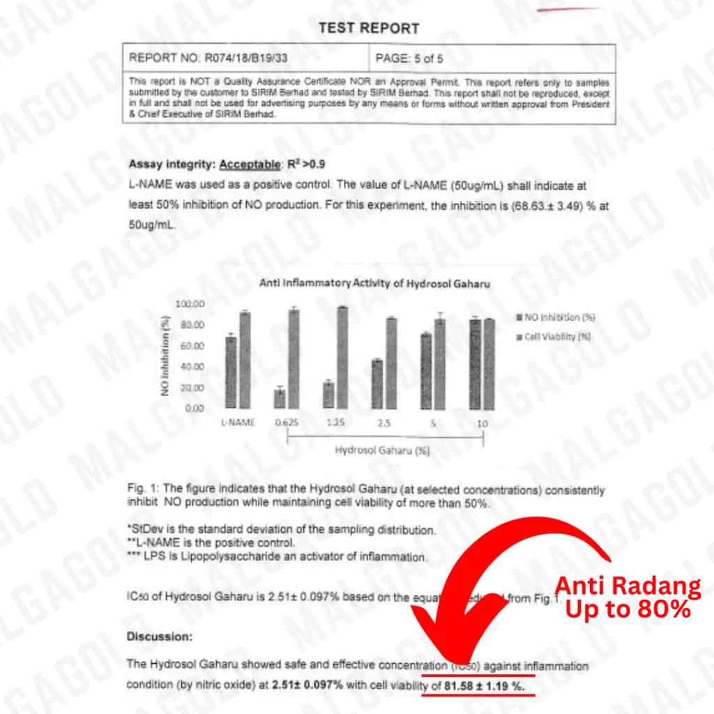 HASIL KAJIAN DI SIRIM menunjukkan bahan malgagold+ bersifat anti radang sehingga 81%