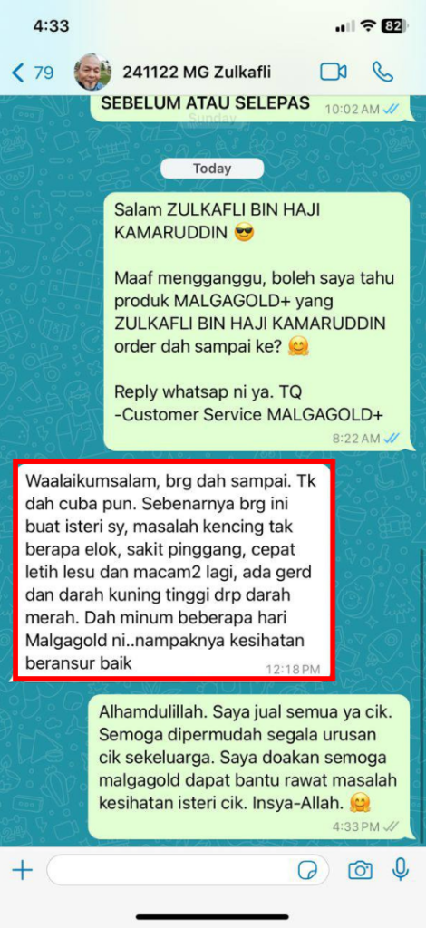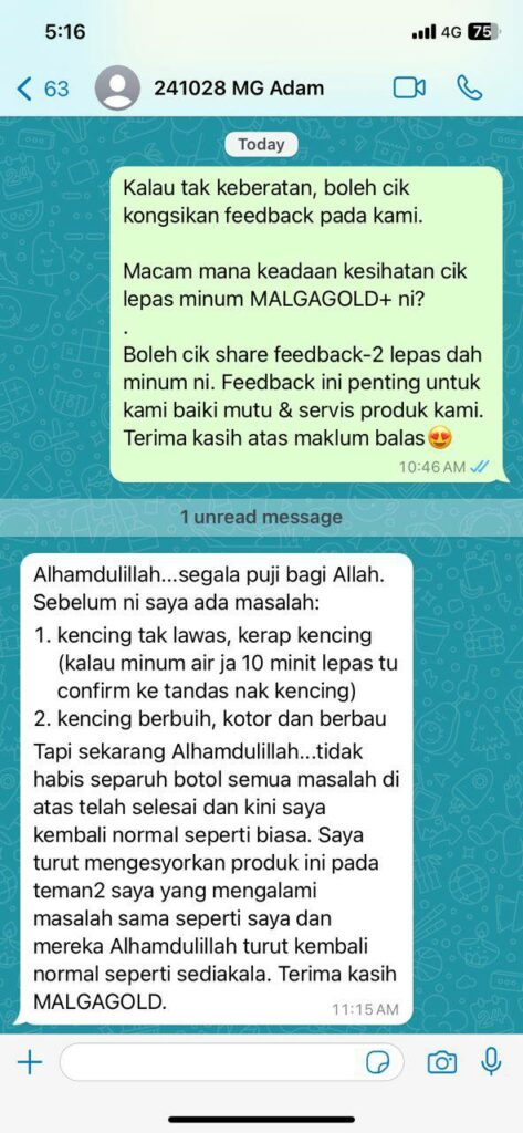 Kalau hari ini anda masih belum percaya dan bertindak untuk cuba, mungkin kesan positif, sihat dan bahagia tidak dialami seperti pengguna MALGAGOLD+ di atas…
