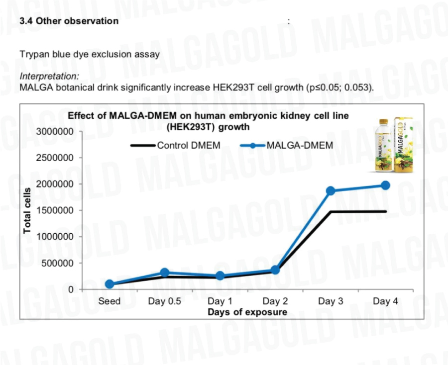Malahan kesan ke atas sample sel buah pinggang menunjukkan sel buah pinggang kembali meningkat 500x ganda berbanding sebelum